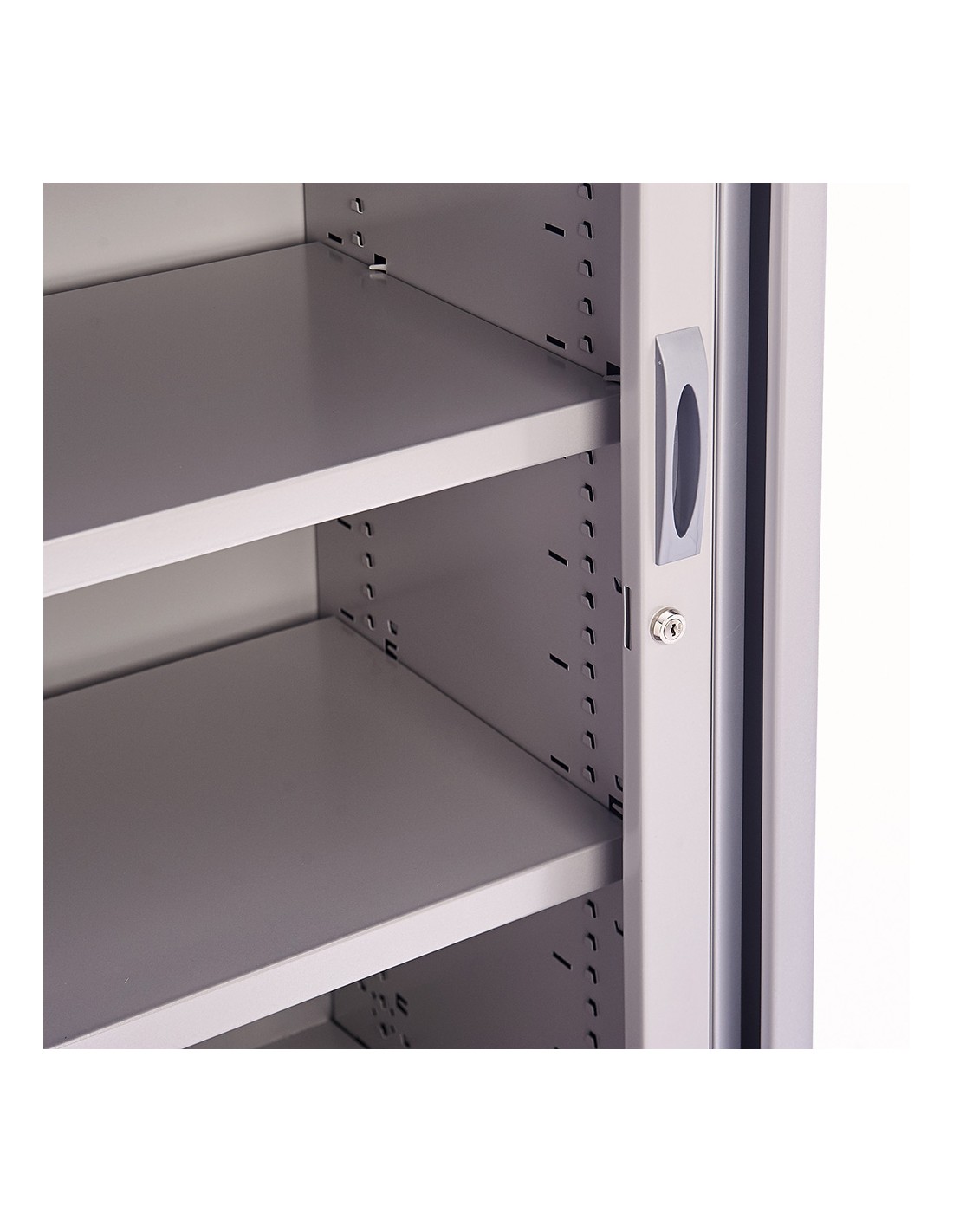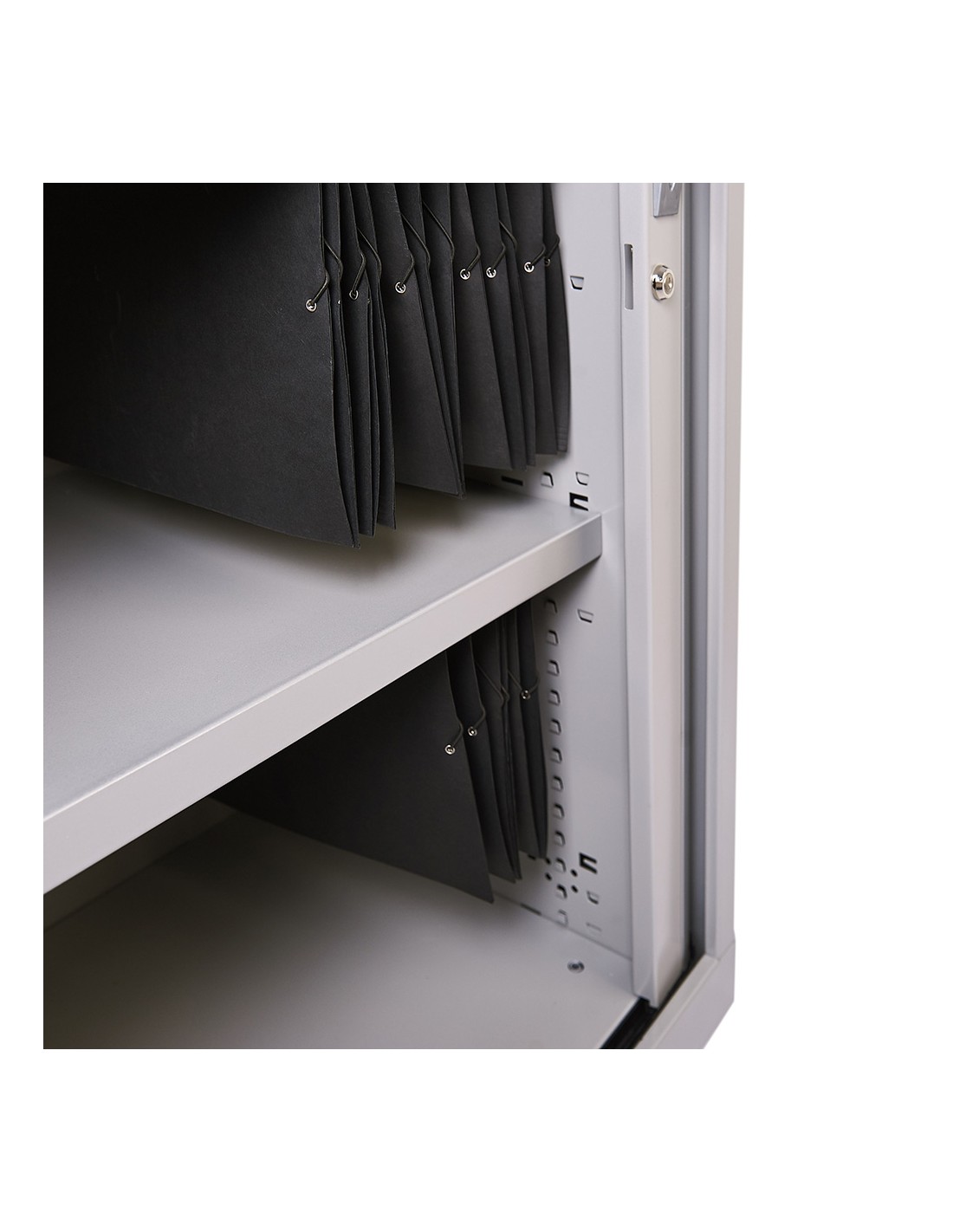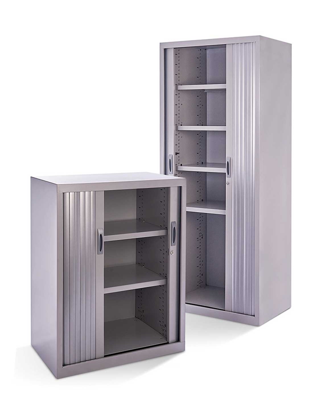 Familia de armarios metálicos de gran resistencia y calidad. Solución perfecta para el almacenamiento y clasificación de archivos y documentos. Los armarios incorporan niveladores realizados en plancha de acero. Puertas de persiana con cerradura realizadas en polímero técnico y baldas metálicas regulables en altura incluidas (admiten archivar con carpetas colgantes tamaño DIN A4). Pintados en epoxy, color según modelo. Se entregan montados de serie.