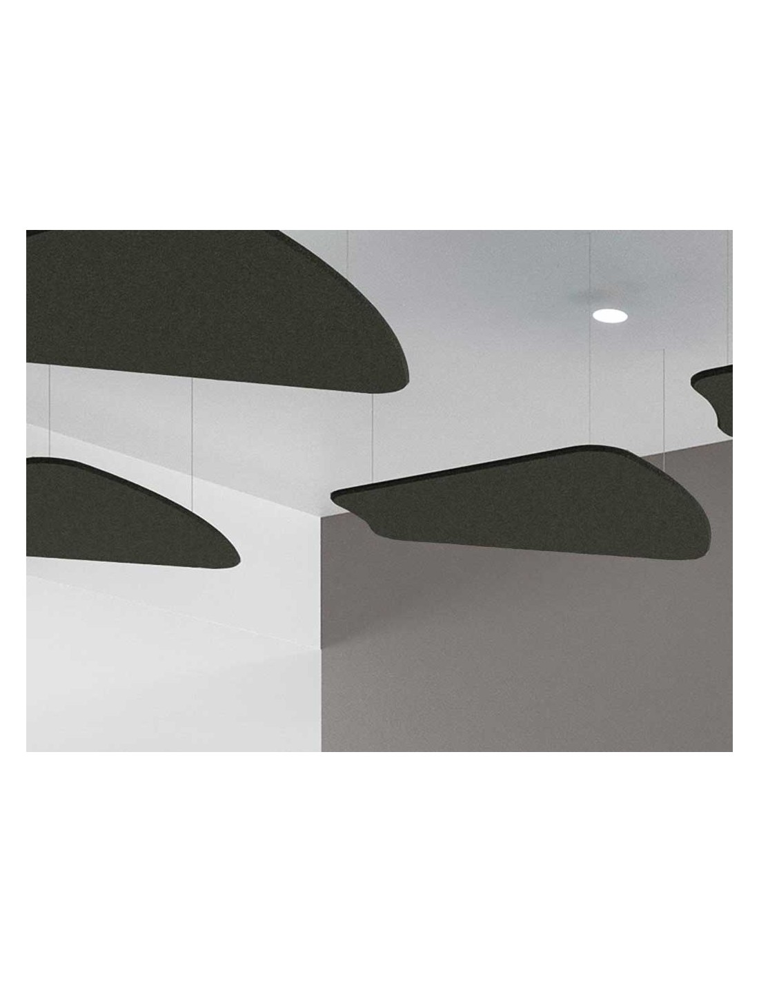 Los elementos suspendidos tipo isla son perfectos para optimizar la acústica del espacio respetando el diseño original del techo. Con su diseño redondeado en forma de pétalo, se pueden crear múltiples composiciones a diferentes alturas.