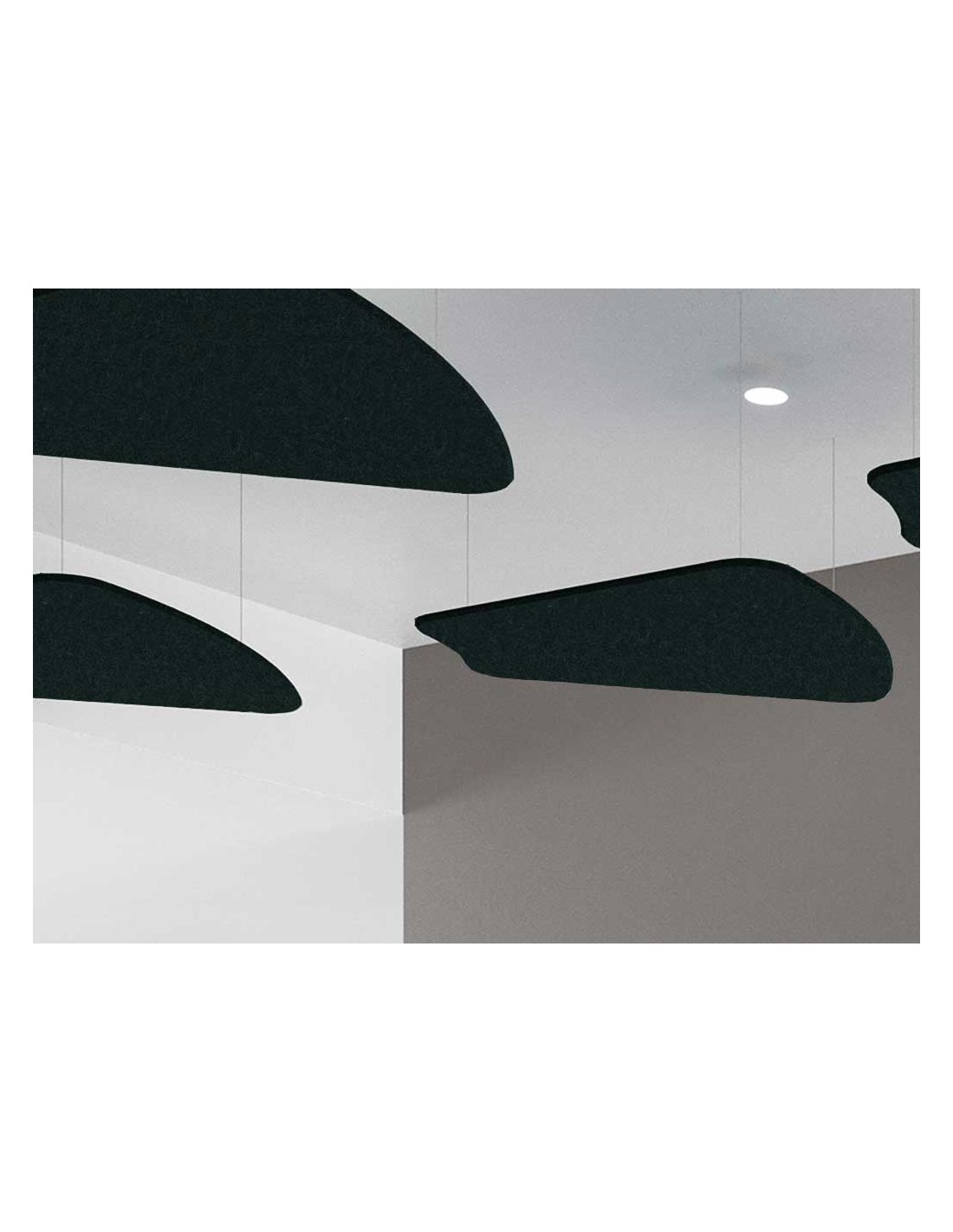 Los elementos suspendidos tipo isla son perfectos para optimizar la acústica del espacio respetando el diseño original del techo. Con su diseño redondeado en forma de pétalo, se pueden crear múltiples composiciones a diferentes alturas.