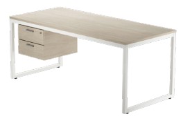 Cajonera colgante con guías metálicas de extracción total y llave centralizada. Fabricada en tablero de partículas con recubrimiento de melamina de 19 mm de espesor. Cantos termofusionados de 1 mm de espesor. Varios acabados. Fijación a la mesa mediante herrajes específicos.