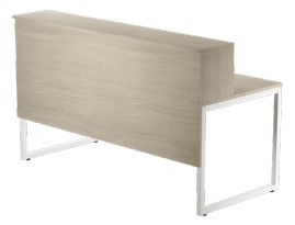 Mostrador modular fabricado en tablero de partículas con recubrimiento de melamina de 19/25 mm de espesor. Cantos termofusionados de 1/2 mm de espesor. Varios acabados. Fijación a la mesa mediante herrajes específicos.