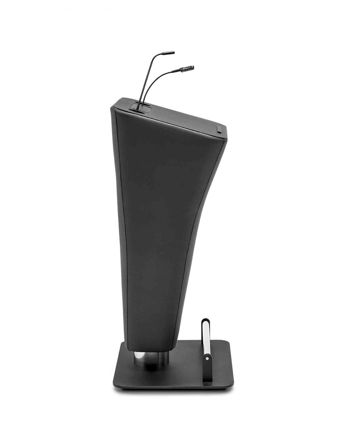 Llegas al atril para dar un discurso, te posicionas en él y ahí te das cuenta que no es un atril cualquiera, es una pieza única, sólida y confortable. No solo realza tu espacio con su estructura tapizada y su sinuosa forma, sino que además ofrece seguridad al orador.