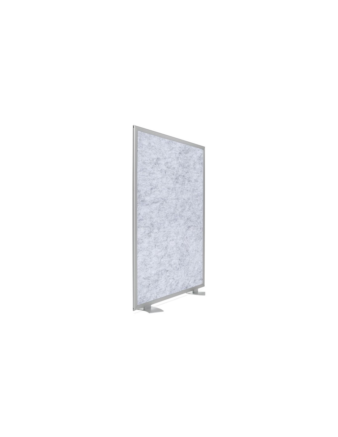 Mampara Modular Fonoabsorbente LIMIT, fabricada con perfil de aluminio anodizado mate y pies trapezoidales metálicos pintados en gris. Graduable con apertura de grados necesaria. Disponible panel acústico disponible en 7 colores.