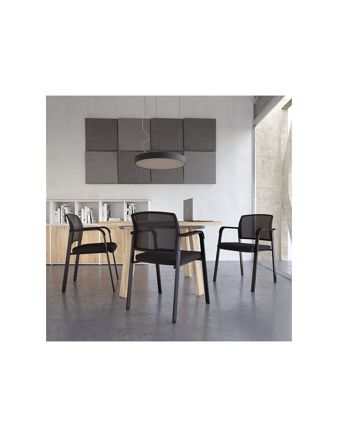 La silla confidente MIRÓ se puede instalar en despachos, ya que su ligereza visual combina a la perfección con otras opciones de equipamiento como sillones direccionales.