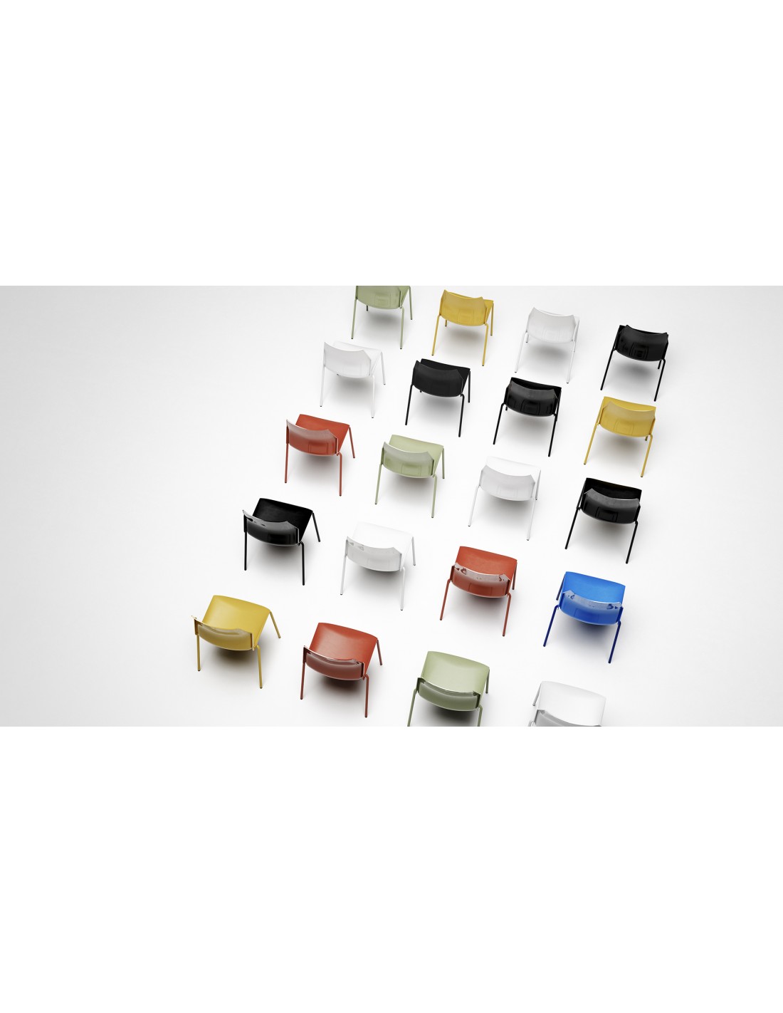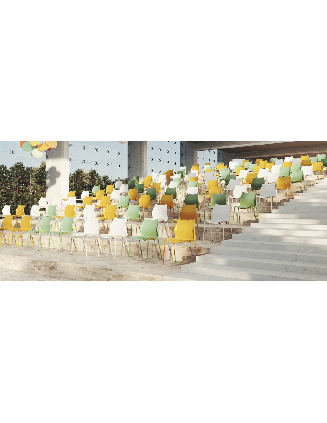 Programa de sillería de colectividades de gran versatilidad. Durabilidad y ergonomía. Gran variedad cromática. Estructura en de tubo redondo 18 x 1,5 mm pintado epoxi. Monocasco fabricado en polipropileno. Monocolor en negro, blanco.