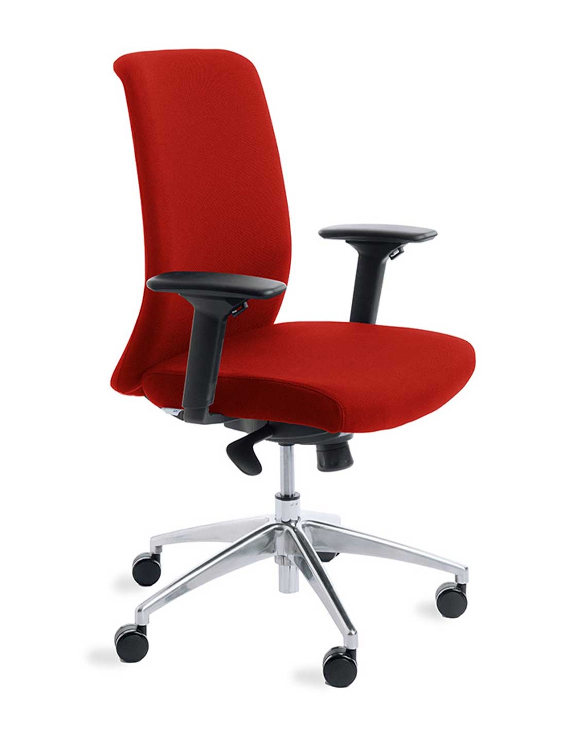 Silla móvil con ruedas para despacho. Tapizada en tela ignífuga. Interior de espuma inyectada. Base de aluminio y robusto mecanismo sincro. Regulación de la altura y el balanceo. Regulación de la profundidad del asiento. Incluye brazos regulables de serie.