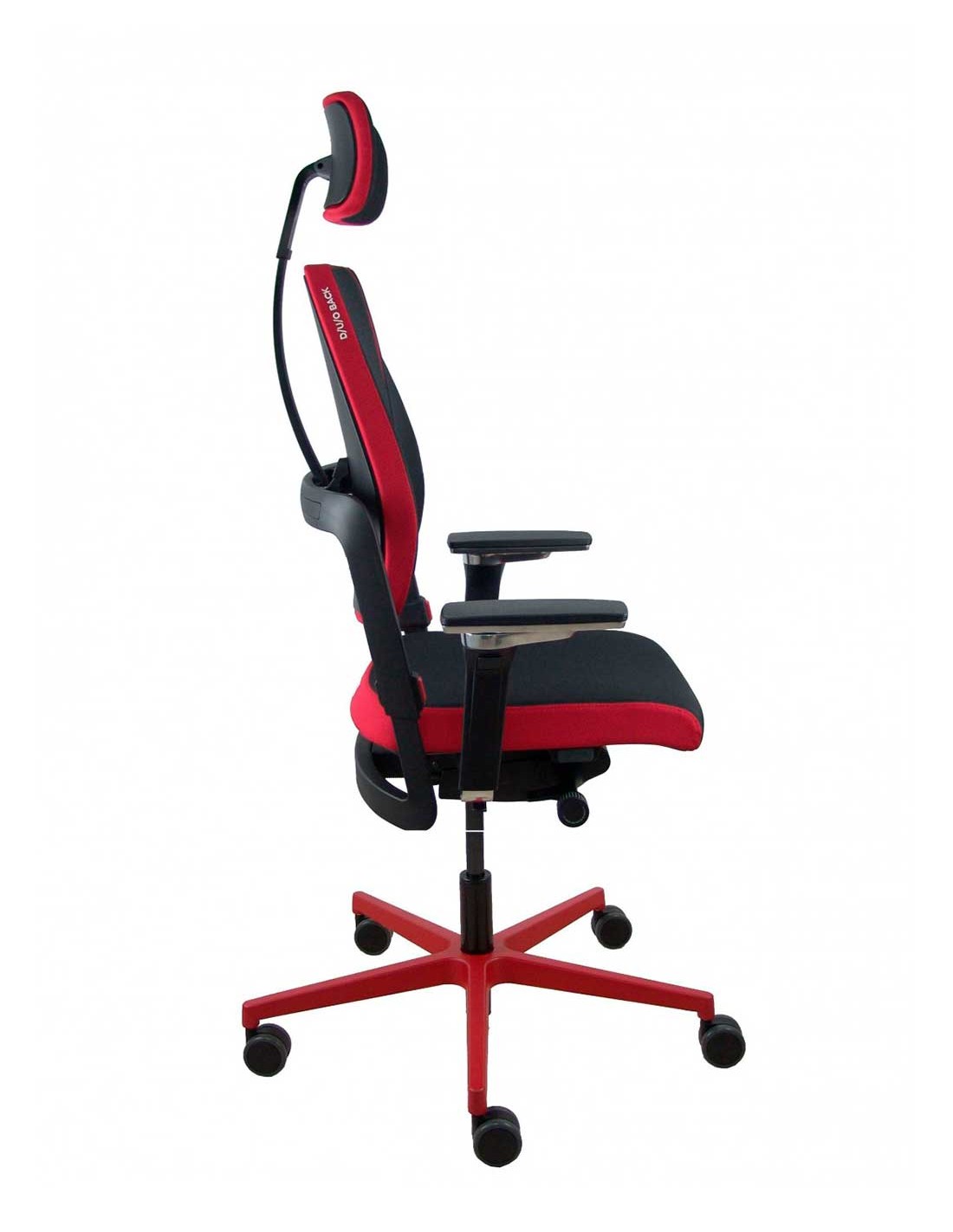 Respaldo de ultima generación, dividido en dos partes para una mejor adaptación y con cabecero y asiento tapizado en tejido bondai color gris. Brazos regulables 4D.