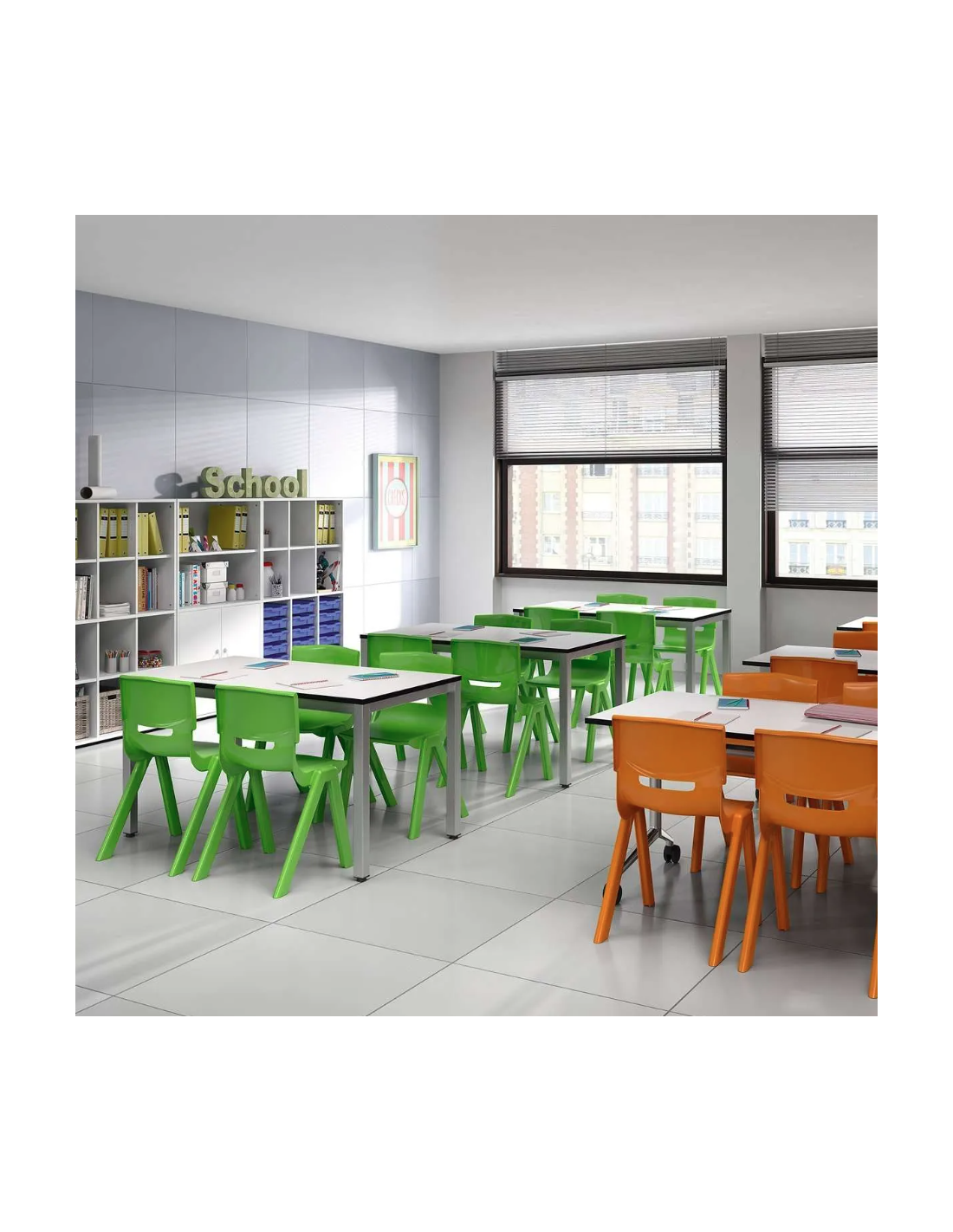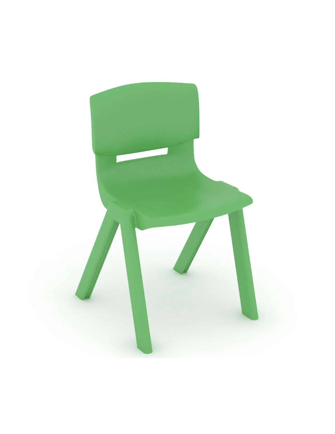 Es una silla monobloque, es decir, en una única estructura, por lo que no existen áreas en la misma que puedan provocar daño a los menores. Son también unas sillas muy económicas y prácticas: se pueden apilar unas sobre otras en el aula cuando se realicen actividades diferentes a las clases, ocupando un espacio muy reducido. También son unas sillas muy fáciles de limpiar y muy ligeras de manejar sin esfuerzo.