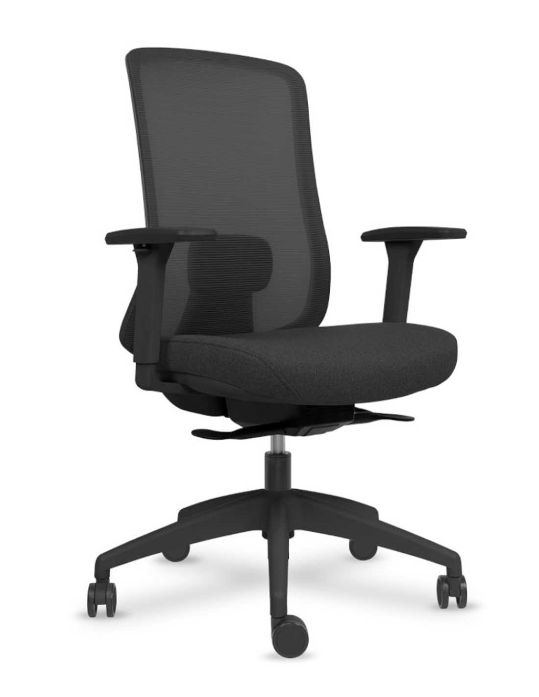 Silla Operativa Respaldo Malla, Brazos 4D integrados. Asiento de goma flexible de alta densidad de 50 kgs/m3.
