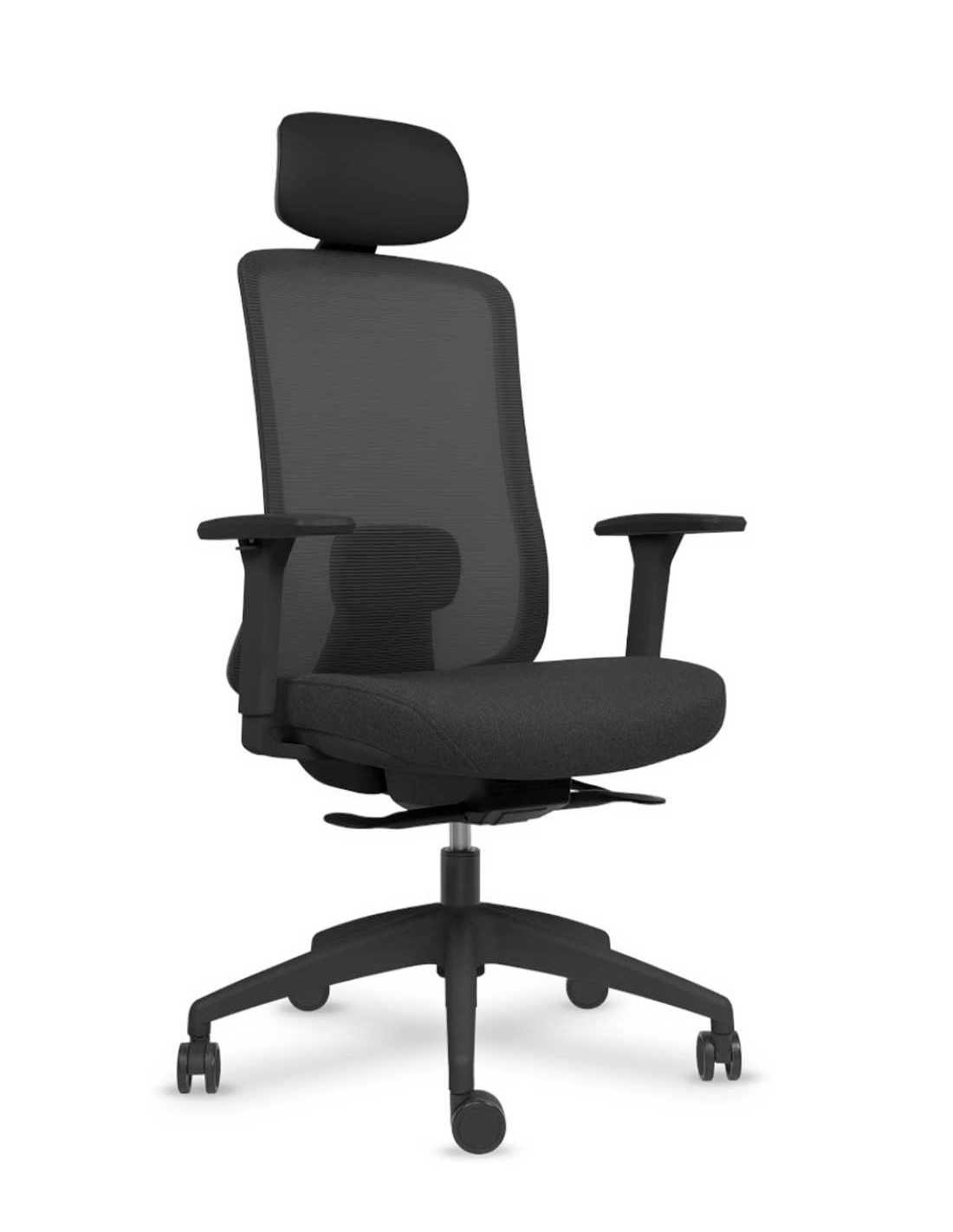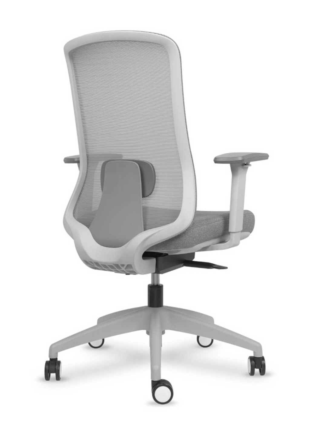 Silla Operativa Respaldo Malla, Brazos 4D integrados. Asiento de goma flexible de alta densidad de 50 kgs/m3.