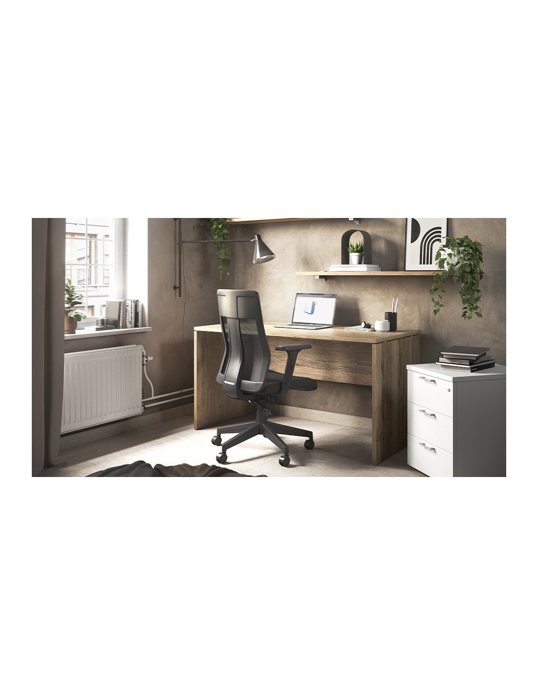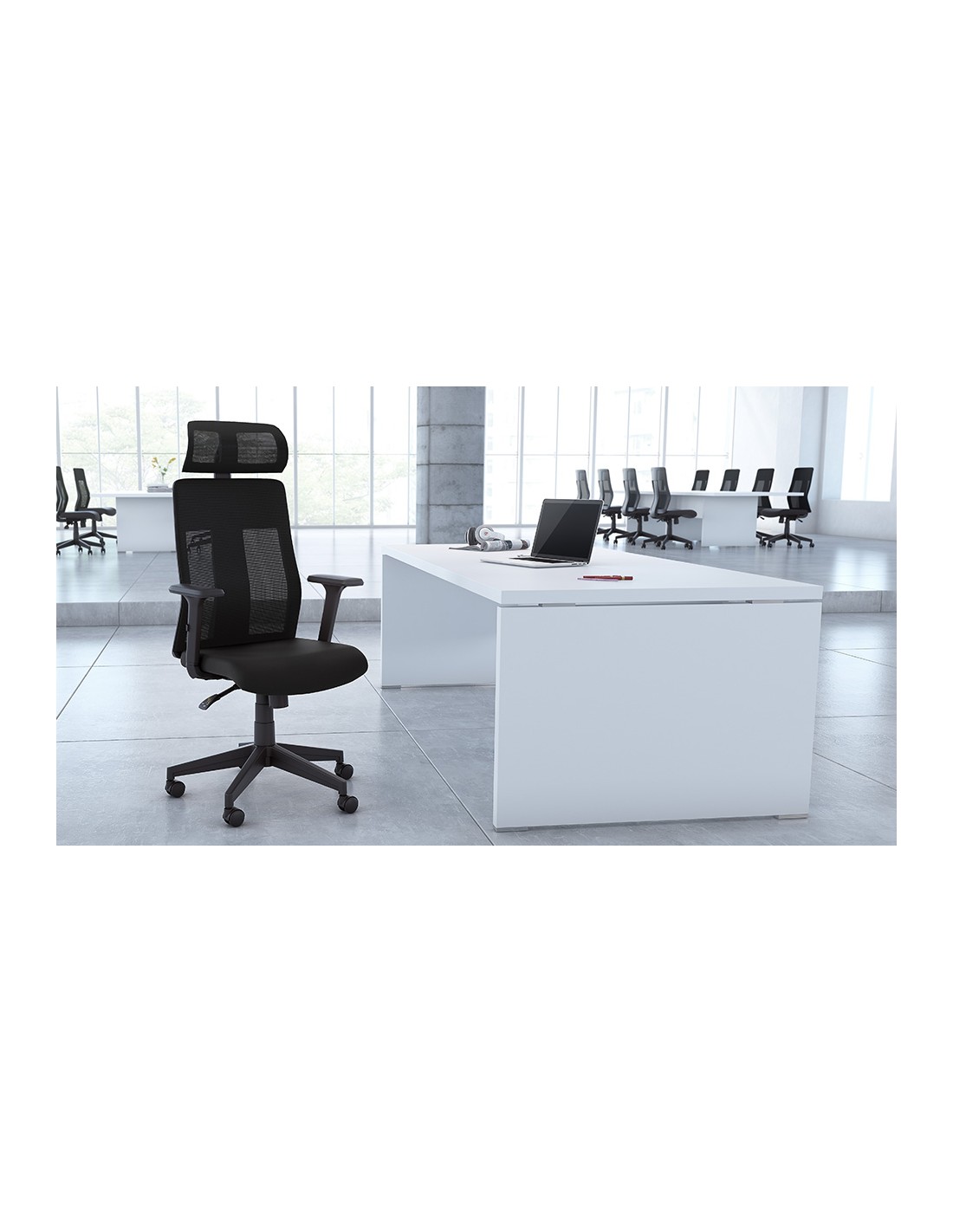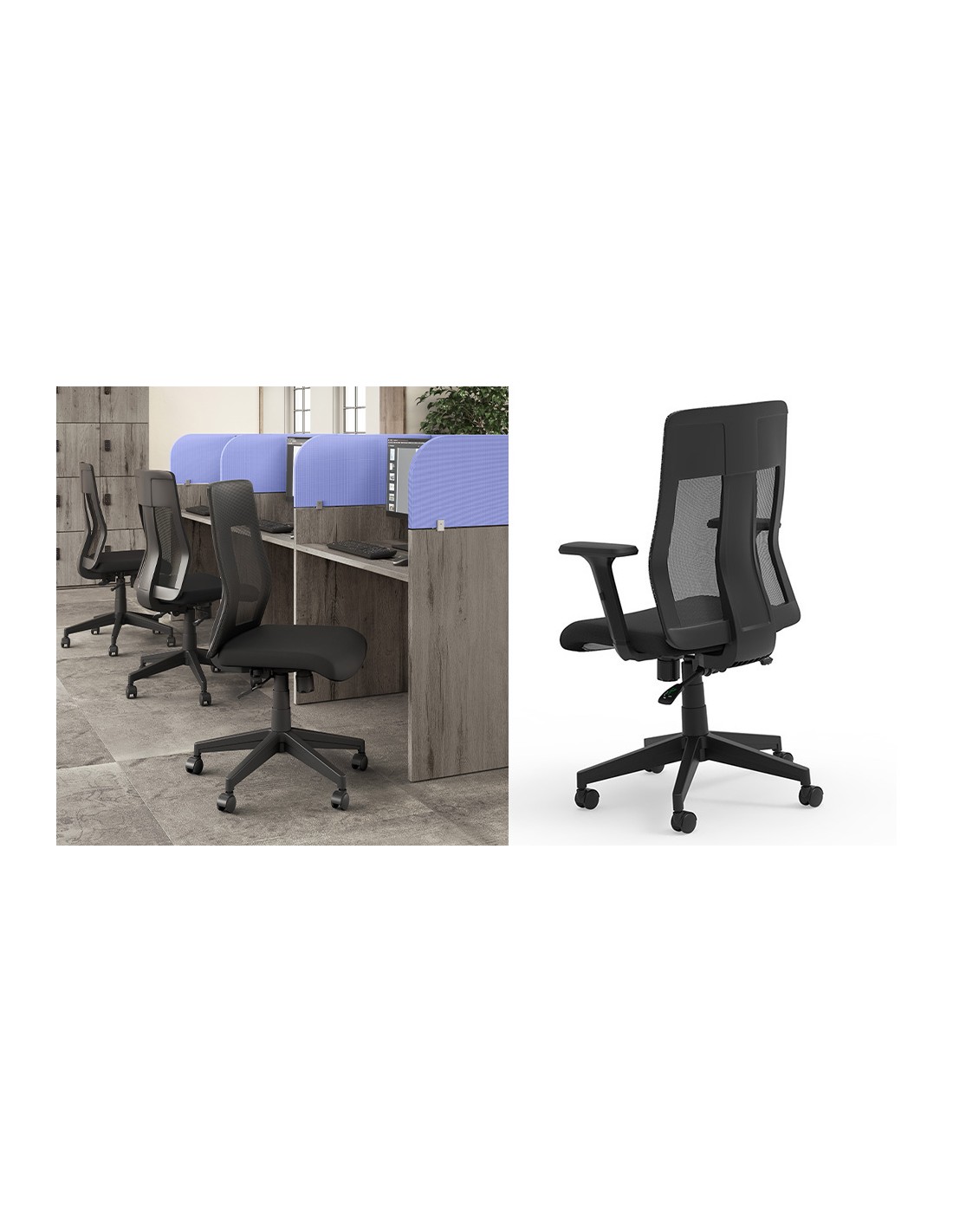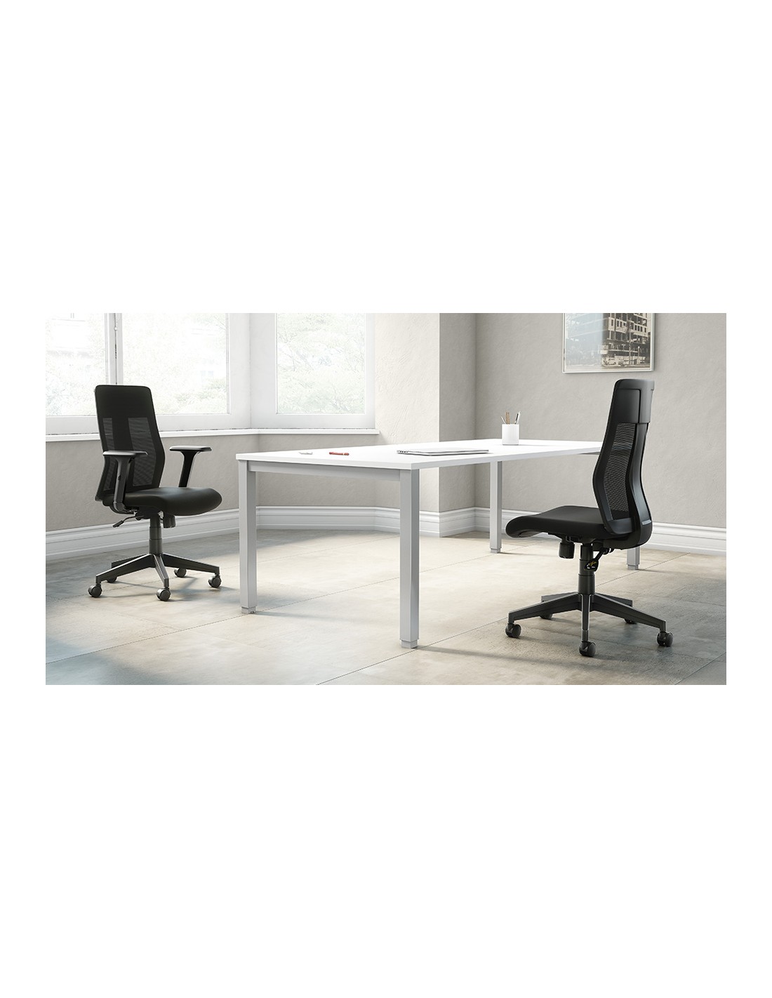 Respaldo fijo / Mecanismo sincro / Brazos regulables en altura / Ruedas duras Ø 50 mm negras.