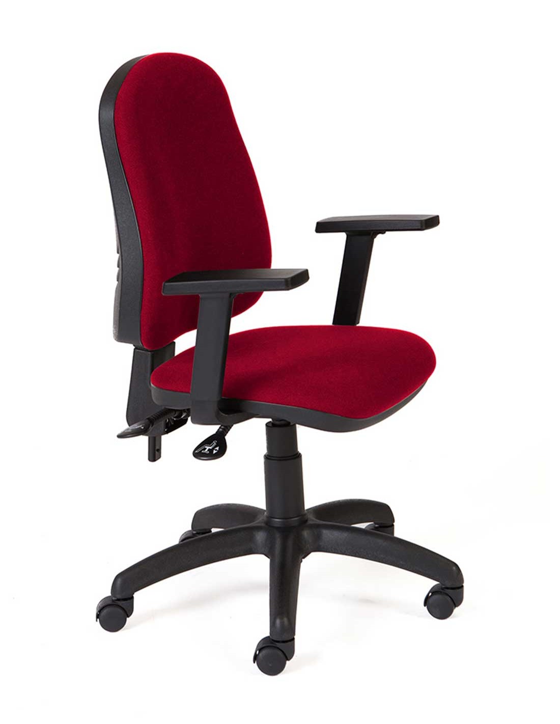 Mecanismo Asincro con regulación independiente del respaldo y el asiento. Pomo para ajustar la tensión según el peso corporal. Gran espesor de la espuma tanto del respaldo como del asiento. Formas envolventes en la zona lumbar del respaldo. Asiento regulable en altura Brazos regulables en altura.