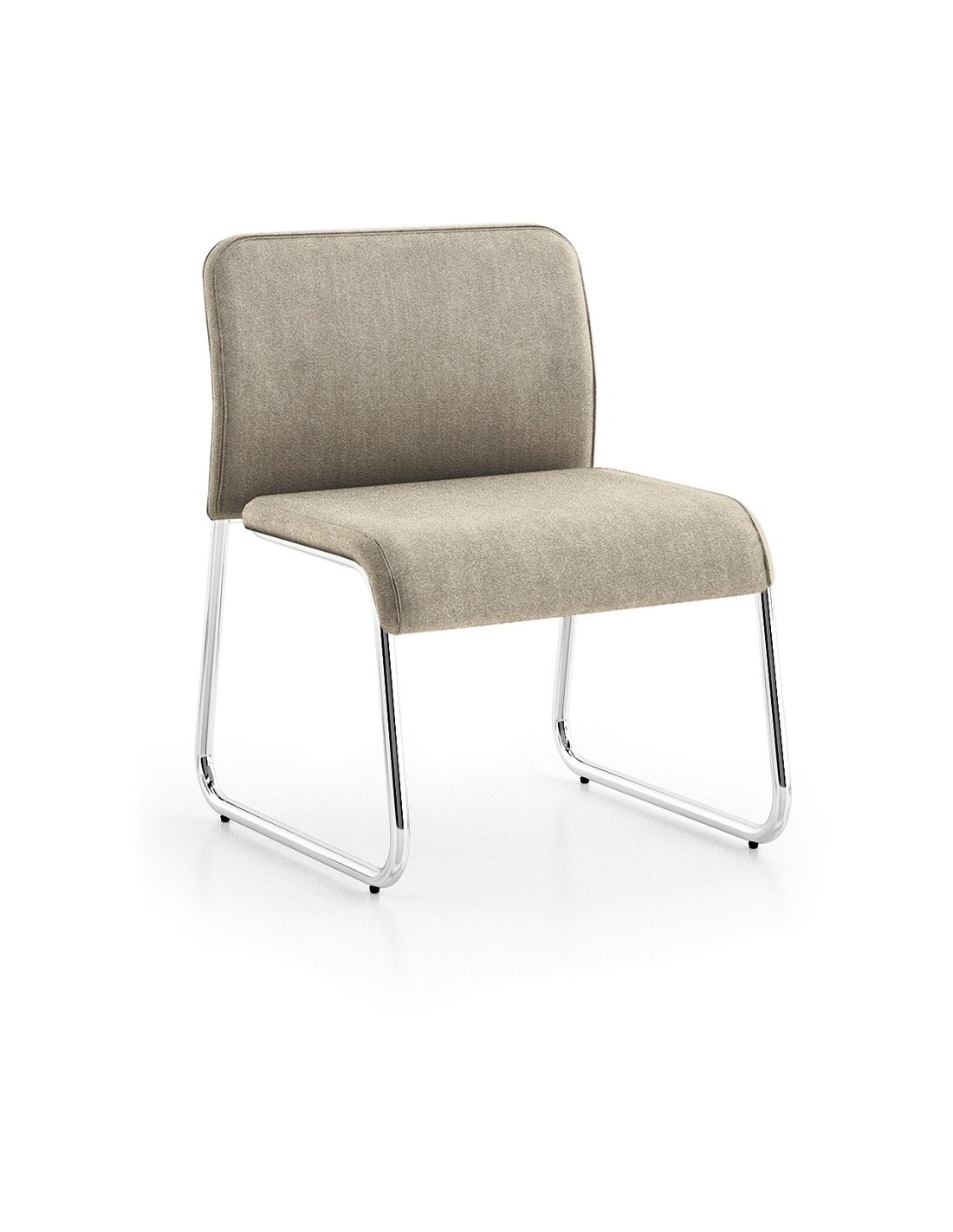 Módulo espera tapizado con base patín metálica. Monocarcasa de madera prensada y estructura metálica blanca.