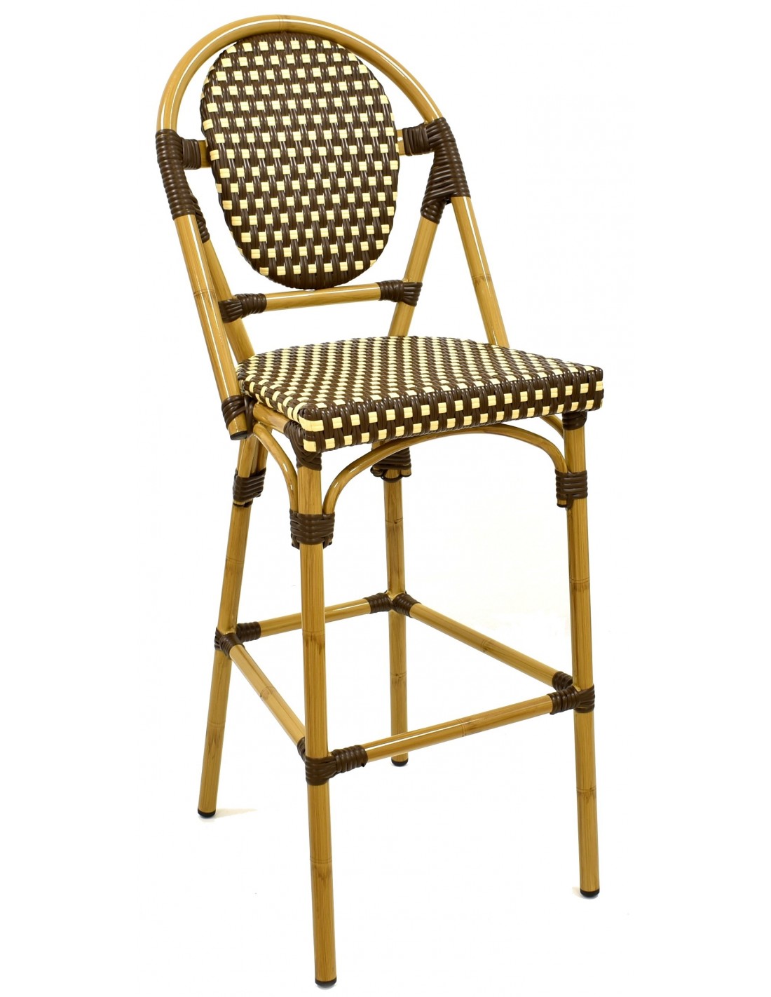 Taburete de diseño para exterior, armazón de aluminio y ratán marrón y crema - tal cual imagen -. Silla a juego